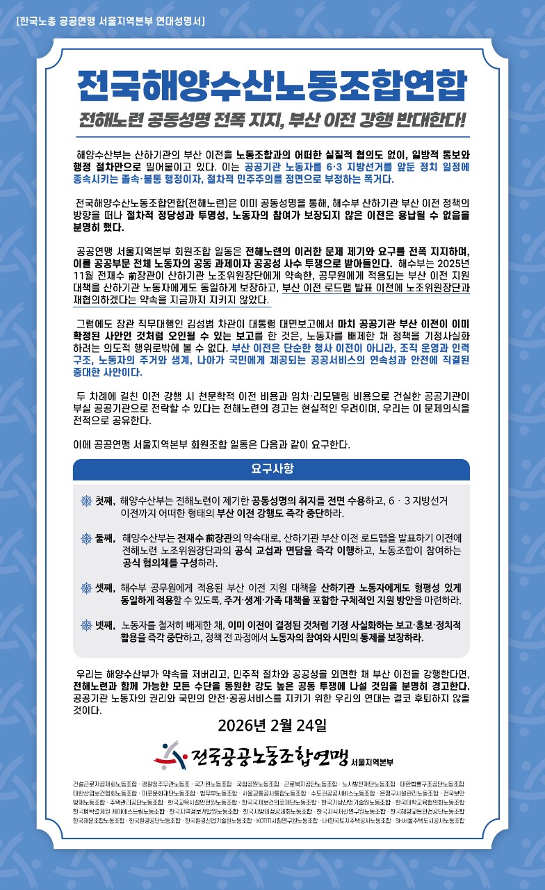 Àü±¹°ø°øºÎ¹®³ëµ¿Á¶ÇÕ ´ëÇ¥ÀÚ´ëȸ ¹× 21´ë ´ë¼± °ø°øºÎ¹® ´ë¼± Á¤Ã¥ ¿ä±¸ ¹ßÇ¥ ...