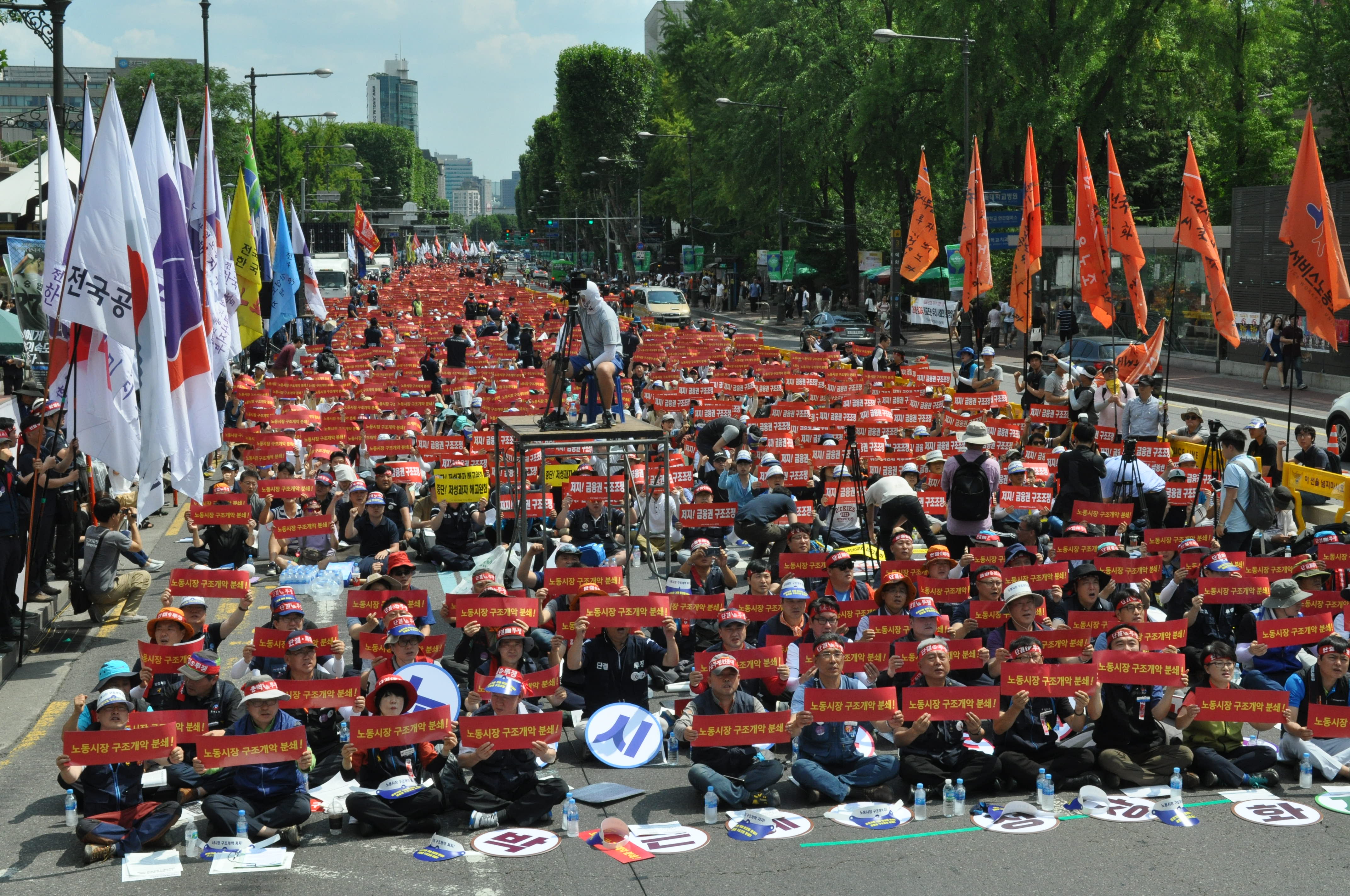 7¿ù 4ÀÏ ¿ì¸® ¿¬¸ÍÀ» ºñ·ÔÇØ 1¸¸ 5õ¿©¸íÀÇ Á¶ÇÕ¿øÀÌ ´ëÇзο¡ ¸ð¿© "Á¤ºÎÀÇ ³ëµ¿½ÃÀå ±¸Á¶°³¾ÇÀúÁö, 2´Ü°è °¡Â¥ Á¤»óÈ ÀúÁö"¸¦ À§ÇÑ ÅõÀï°áÀÇ´ëȸ¸¦ °³ÃÖÇß´Ù.