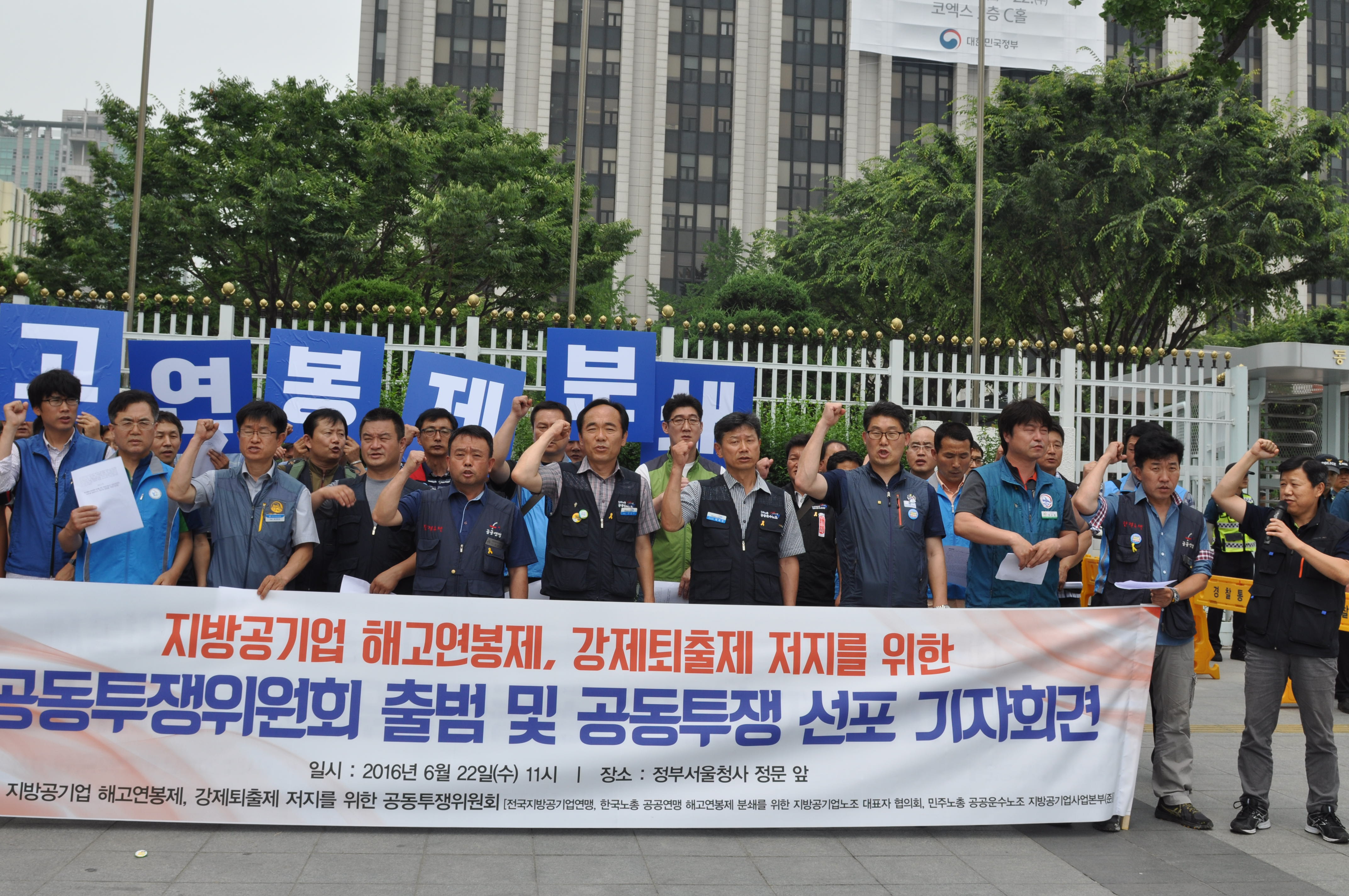 22ÀÏ ¿ÀÀü 11½Ã, ¼¿ïÁ¤ºÎû»ç Á¤¹® ¾Õ¿¡¼ Çѱ¹³ëÃÑ °ø°ø¿¬¸Í, ¹ÎÁÖ³ëÃÑ °ø°ø¿î¼ö³ëÁ¶, Áö¹æ°ø±â¾÷¿¬¸ÍÀÌ Áö¹æ°ø±â¾÷ ÇØ°í¿¬ºÀÁ¦¡¤°Á¦ÅðÃâÁ¦ °ÅºÎ °øµ¿ÅõÀï¿¡ ÇÕÀÇÇϰí, "ÇÔ²² ÅõÀïÇØ¼ ¹Ýµå½Ã ½Â¸®ÇϰڴÙ"´Â °áÀǸ¦ ¼±Æ÷ÇÏ´Â ±âÀÚȸ°ßÀ» ÁøÇàÇß´Ù.¿¬¸Í ÀÌÀλó À§¿øÀå°ú °ø°ø¿î¼ö³ëÁ¶ Á¶»ó¼ö À§¿ø, ±×¸®°í Áö¹æ°ø±â¾÷¿¬¸ÍÀ» ´ëÇ¥ÇØ Àü±¹Áö¹æ°ø±â¾÷¿¬¸Í ºñ»ó´ëäÀ§ ÀÇÀå ¹ÚÁÖÇü À§¿øÀåÀÌ Âü¼®Çß´Ù. ÇàÁ¤ÀÚÄ¡ºÎ°¡ Áö³ 5¿ù ÃÊ Áö¹æ°ø±â¾÷ ÇØ°í ¿¬ºÀÁ¦ µµÀÔ¿¡ ´ëÇÑ ÁöħÀ» ¹ßÇ¥ÇÏÀÚ, 3°³ ¿¬¸ÍÀÌ °øµ¿ ´ëÀÀÀ» ÇÏÀÚ´Â ³íÀǸ¦ ½Ç¹«Â÷¿ø, ´ëÇ¥ÀÚ Â÷¿ø¿¡¼ ÁøÇàÇØ¿Ô´Ù.