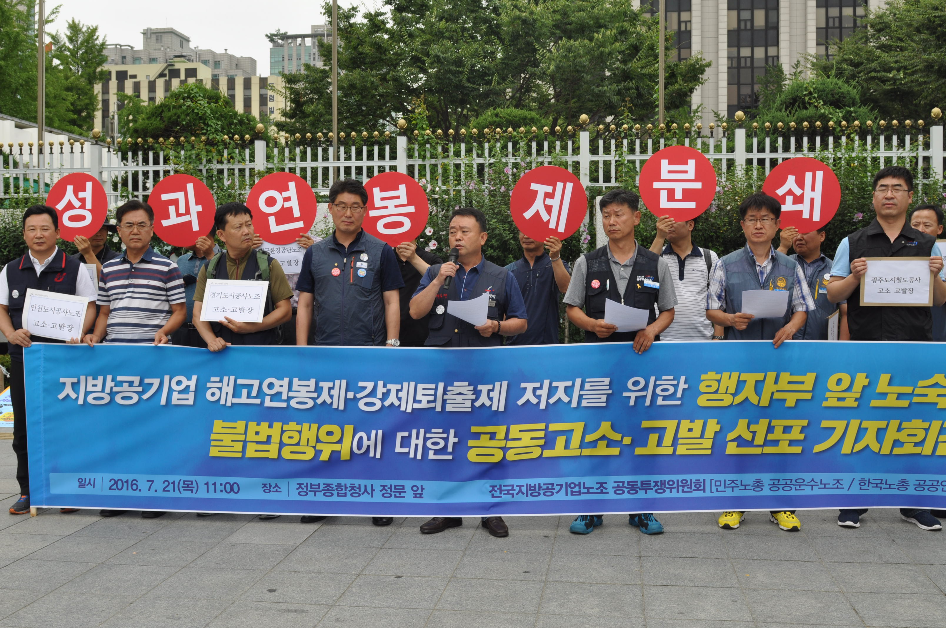 Áö¹æ°ø±â¾÷³ëÁ¶ °øÅõÀ§´Â Áö¹æ°ø±â¾÷À» µ·¹úÀÌ °æÀï½ÃŰ´Â ÇØ°í¿¬ºÀÁ¦¡¤°Á¦ÅðÃâÁ¦¸¦ ÀúÁöÇϱâ À§ÇÏ¿© ÅõÀï ¼öÀ§¸¦ ³ôÀδÙ. °øÅõÀ§´Â ÇàÀںο¡ ÀϹæÀûÀÎ ÇØ°í¿¬ºÀÁ¦ µµÀÔ Áߴܰú ³ëÁ¤±³¼·À» ¿ä±¸ÇÑ´Ù. ¿À´Ã ±âÀÚȸ°ß ÈÄ ÃÑ 17°³ ±â°üÀÇ ÀÌ»çÀå, À̻縦 ±Ù·Î±âÁعý À§¹Ý, ´ÜÇù À§¹ÝÀ¸·Î °í¼Ò°í¹ßÇÑ´Ù. ¶ÇÇÑ Àü±¹Áö¹æ°ø±â¾÷³ëÁ¶ °£ºÎ, Á¶ÇÕ¿øÀÌ Âü¿©ÇÏ´Â ³ë¼÷³ó¼º¿¡ µ¹ÀÔÇÑ´Ù. µ¿½Ã¿¡ 9¿ù °ø°øºÎ¹® Àüü ³ëµ¿ÀÚÀÇ ÃÑÆÄ¾÷ ÅõÀï¿¡ ÇÔ²² Çϱâ À§ÇÏ¿© ÀïÀǵ¹ÀÔÀ» ÁغñÇÑ´Ù. ºÒ¹ýÁ¤ºÎ¸¦ ½ÉÆÇÇϰí, Áö¹æ°ø±â¾÷ °ø°ø¼º °È, ³ëµ¿±Ç ÀïÃ븦 À§ÇØ ³¡±îÁö ÅõÀïÇÒ °ÍÀÌ´Ù.