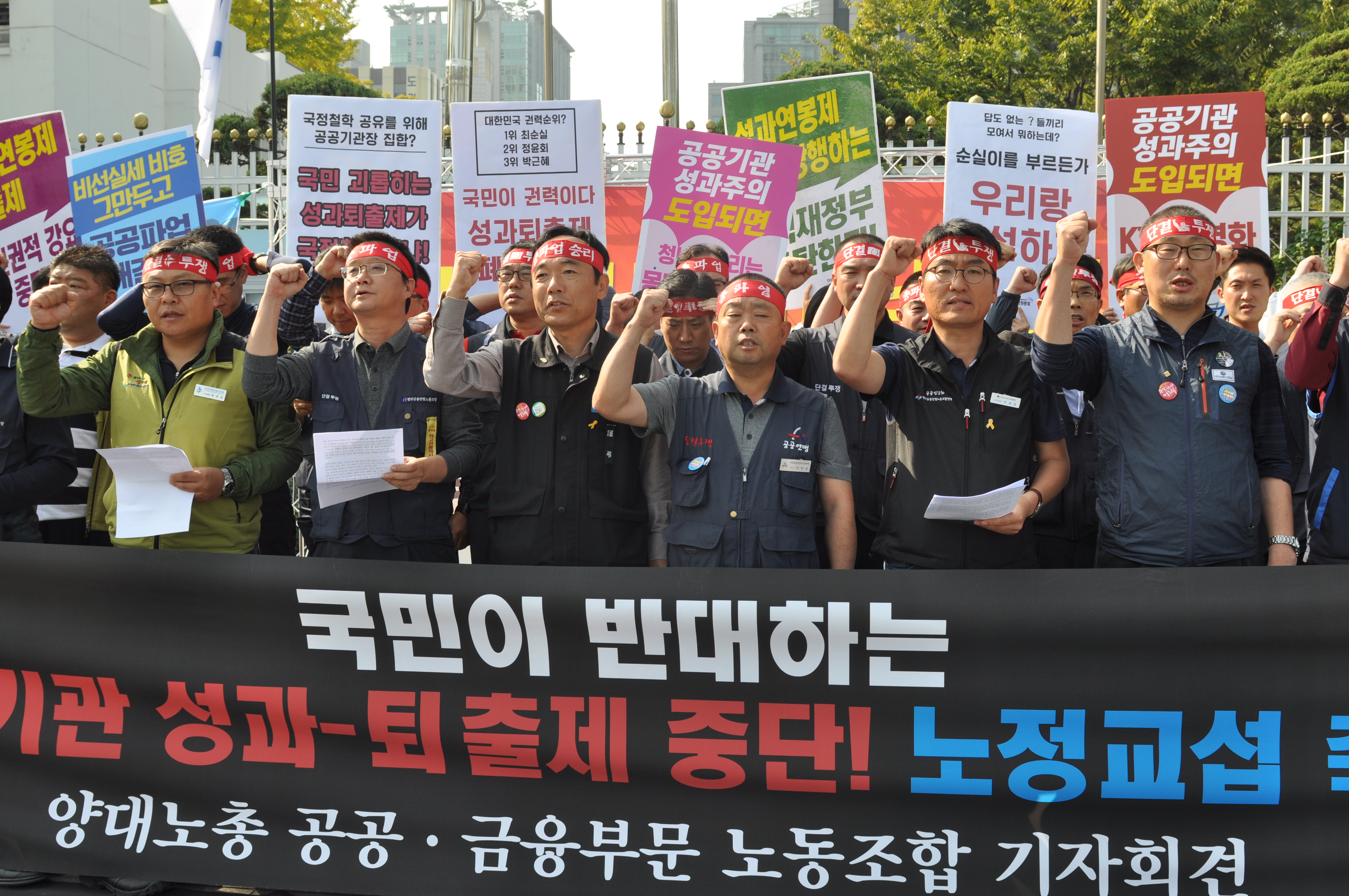 ¾ç´ë³ëÃÑ °ø°ø °ø´ëÀ§°¡ 20ÀÏ ¿ÀÈÄ 13½Ã 30ºÐ °ø°ø±â°üÀå ¿öÅ©¼óÀÌ °³ÃֵǴ ¼¿ïÁ¤ºÎÁ¾ÇÕû»ç º°°ü Àαٿ¡¼ ±âÀÚȸ°ßÀ» °®°í, ¹Ú±ÙÇý Á¤±Ç¿¡ ¼º°ú¿¬ºÀÁ¦ °Á¦ ÃßÁøÀ» Áß´ÜÇϰí, ³ëµ¿Á¶ÇÕ°úÀÇ ´ëÈ¿¡ ³ª¼³ °ÍÀ» ¿ä±¸Çß´Ù. °ø´ëÀ§´Â ±âÀÚȸ°ß¹®À» ÅëÇØ ¡®¸®¾ó¹ÌÅͰ¡ ½Ç½ÃÇÑ ¿©·ÐÁ¶»ç °á°ú ±¹¹ÎÀÇ 65.8%°¡ ¼º°ú¿¬ºÀÁ¦°¡ °øÀͼºÀ» Ä§ÇØÇÑ´Ù°í ÀÀ´äÇß°í, 69.4%°¡ ¼º°ú¿¬ºÀÁ¦ µµÀÔÀº ³ë»çÇÕÀÇ·Î °áÁ¤ÇØ¾ß ÇÑ´Ù°í ´äÇßÀ¸¸ç, 77.6%°¡ Á¤ºÎ¿Í ³ëÁ¶ÀÇ ´ëȰ¡ ÇÊ¿äÇÏ´Ù°í »ý°¢ÇÑ °ÍÀ¸·Î ¹àÇôÁ³´Ù¡¯¸ç, ³ëµ¿ÀÚÀÇ Á¤´çÇÑ ¿ä±¸¿¡ ºÒ¹ý µüÁö ºÙÀÌ°í ´ëȸ¦ °ÅºÎÇÏ´Â ¹Ú±ÙÇý Á¤ºÎ¿¡¡®±¹¹ÎÀÇ ¶æÀ» °âÇãÈ÷ ¼ö¿ëÇØ ¼º°ú¿¬ºÀÁ¦ Áß´ÜÀ» ¼±¾ðÇÏ¶ó¡¯°í ¿ä±¸Çß´Ù. ÀÌÀλó À§¿øÀåÀº ¡°¿©¼Ò¾ß´ë ±¹È¸, »ç¹ýºÎ ¸ðµÎ ±¹¹Î¿¡°Ô Èñ¸ÁÀ» ÁÖÁö ¸øÇϰí ÀÖ´Â »óȲÀÌ ¾ÈŸ±õ´Ù¡±¸ç, ¡°°ø°ø³ëµ¿ÀÚ°¡ ¾ÕÀå¼ ÅõÀïÇϰí ÇàÁ¤µ¶ÀçÁ¤±Ç¿¡ ¸Â¼ ¹ÎÁÖÁÖÀǸ¦ ÁöÄѳ»ÀÚ¡±°í ¸»Çß´Ù. À±Á¾¹Ú ´ë±¸Ã¶µµ³ëÁ¶ À§¿øÀåÀº¡°´ë±¸ÁöÇÏö Âü»ç ´ç½Ã ¾ÈÀüÀοø Ãæ¿øÀ» ¿ä±¸Çϸç Àå±â°£ ÆÄ¾÷À» ÇÑ °æÇèÀÌ ÀÖ´Ù¡±¸é¼¡°±¹¹ÎÀÇ »ý¸í°ú ¾ÈÀüÀ» À§ÇùÇÏ´Â ¼º°ú¿¬ºÀÁ¦ ÀúÁö¸¦ À§ÇØ ÇÔ²² ³¡±îÁö ÅõÀïÇÒ °Í¡±À̶ó °áÀÇÇß´Ù.