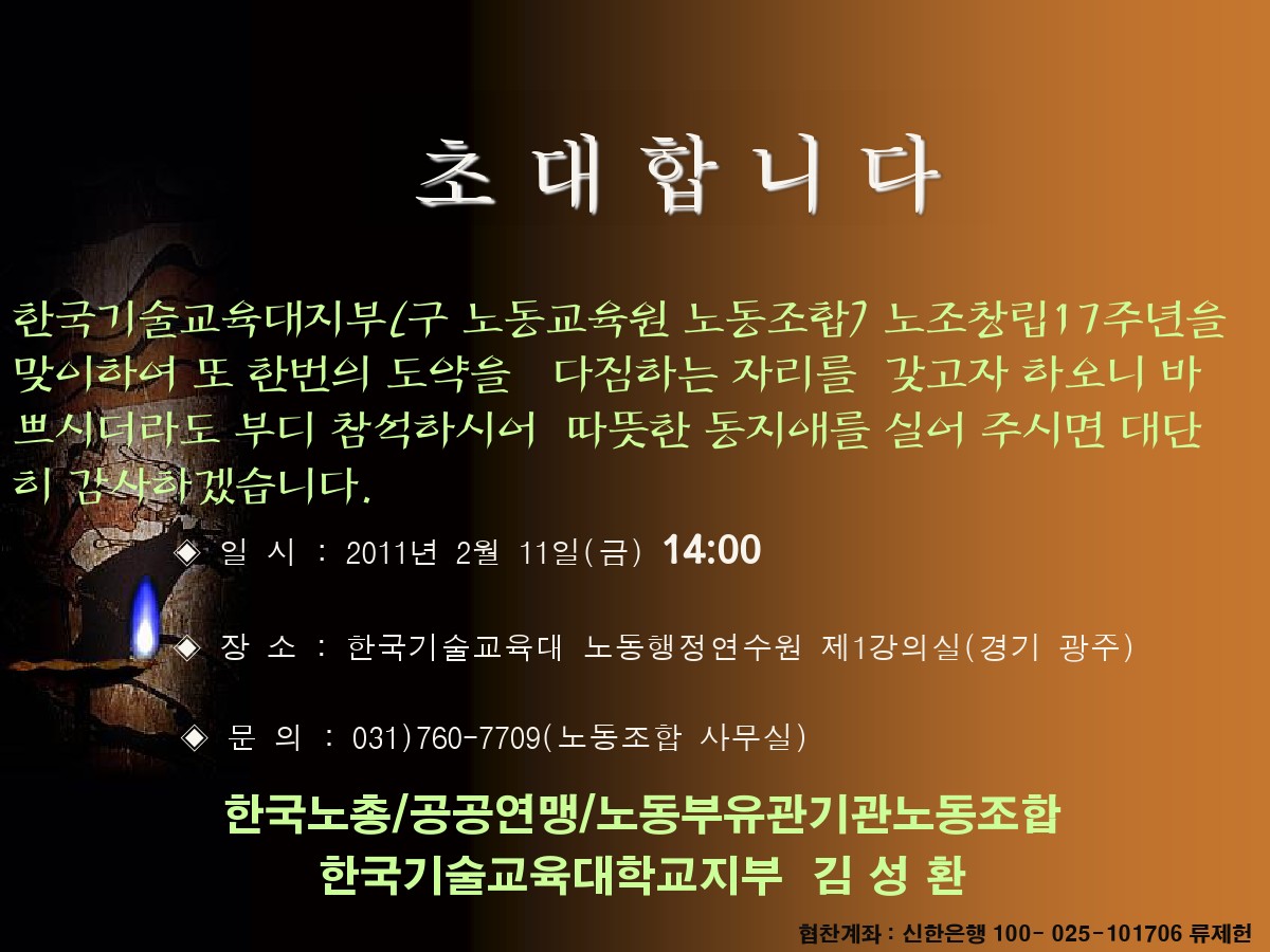 ³ëµ¿³ëÁ¶ Çѱ¹±â¼ú±³À°´ëÇб³ÁöºÎ ⸳±â³ä½Ä ÃÊ´ëÀå