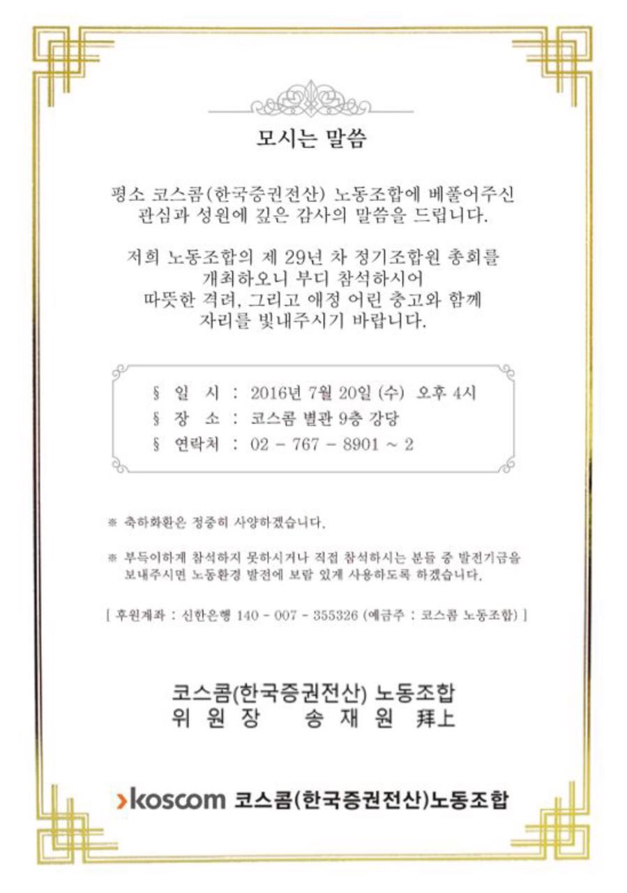 ¡¶ÃÊ´ëÀå¡·ÄÚ½ºÄÞ ³ëÁ¶ Á¦29³âÂ÷ Á¤±â ÃÑȸ