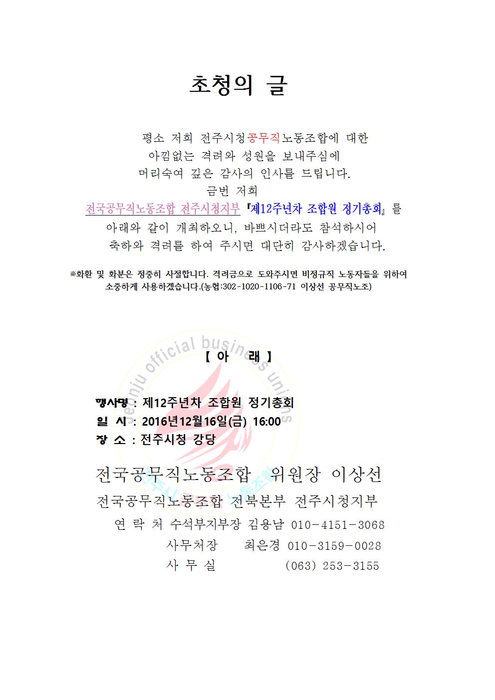 ¡¶ÃÊ´ëÀå¡·Àü±¹°ø¹«Á÷³ëµ¿Á¶ÇÕ ÀüÁÖ½ÃûÁöºÎ Á¤±âÃÑȸ
