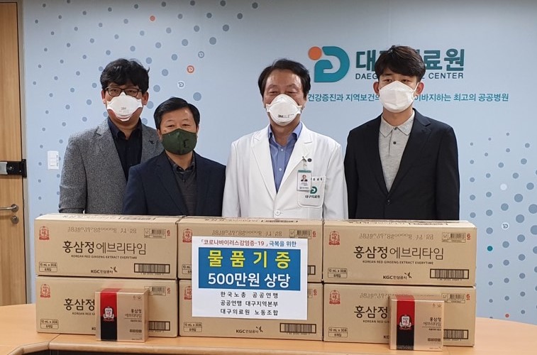 Áö³ 24ÀÏ ¿¬¸ÍÀº Äڷγª19ÀÇ ´ë±¸Áö¿ª È®»ê¿¡ µû¶ó ÃÖÀϼ±¿¡¼ »çÅõ¸¦ ¹úÀ̰í ÀÖ´Â ´ë±¸ÀÇ·á¿ø³ëÁ¶¿Í ´ë±¸¼ºÎ³ëÀÎÀü¹®º´¿ø³ëÁ¶ µî ¿¬¸Í ȸ¿øÁ¶ÇÕÀ» °Ý·ÁÇϰí, ÀÀ¿øÇÏ´Â ¸¶À½À» ´ã¾Æ ´ë±¸Áö¿ªº»ºÎ¿¡ ÈÄ¿ø±ÝÀ» Àü´ÞÇß´Ù.