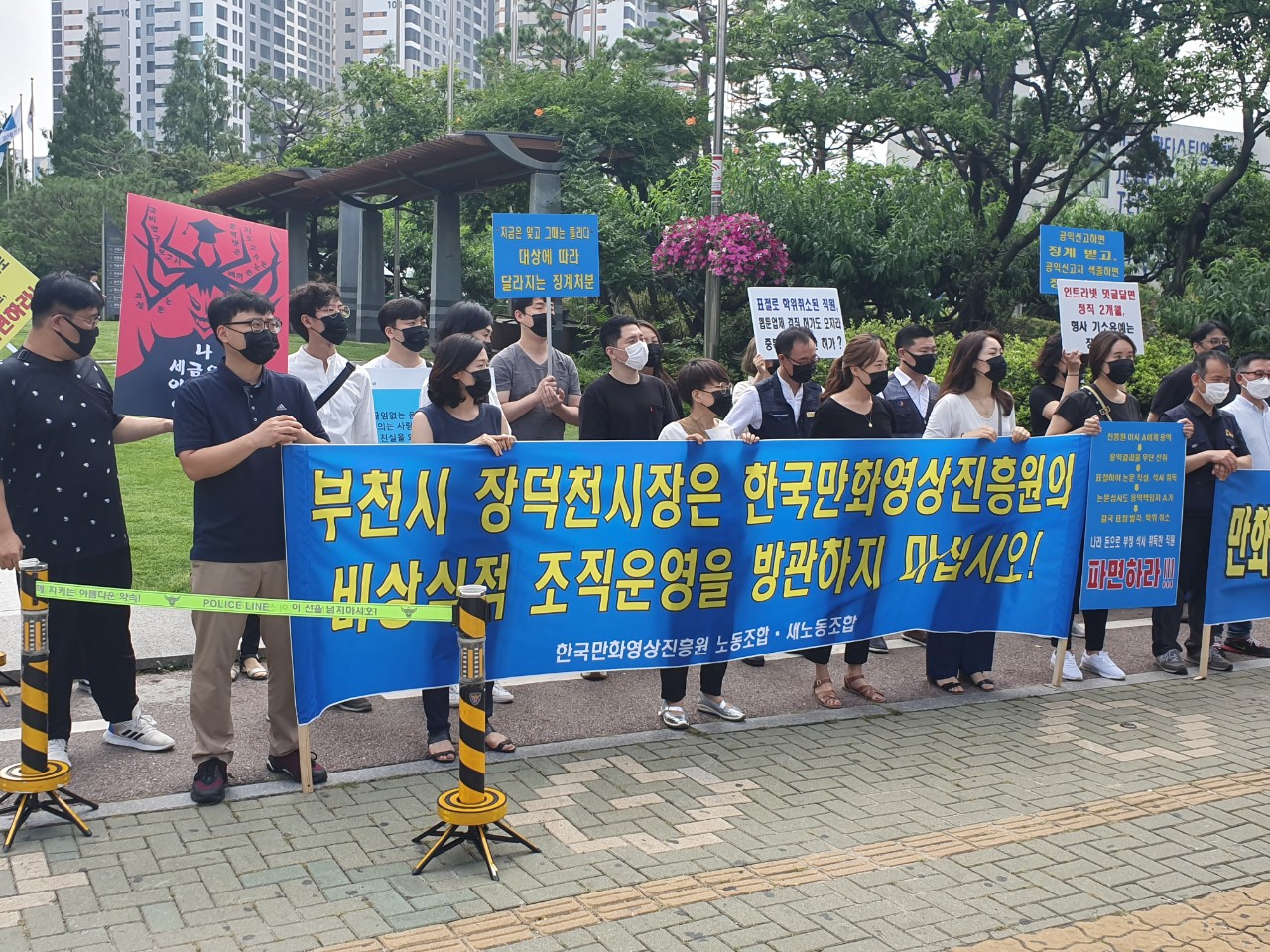 Áö³ 21ÀÏ ¿ÀÀü Çѱ¹¸¸È¿µ»óÁøÈï¿ø³ëÁ¶(À§¿øÀå ÃÖÁß±¹)°¡ ºÎõ½ÃÀÇȸ ¾Õ¿¡¼ ‘Çѱ¹¸¸È¿µ»óÁøÈï¿ø Á¤»óÈ Ã˱¸ °áÀÇ´ëȸ’¸¦ °³ÃÖÇß´Ù.