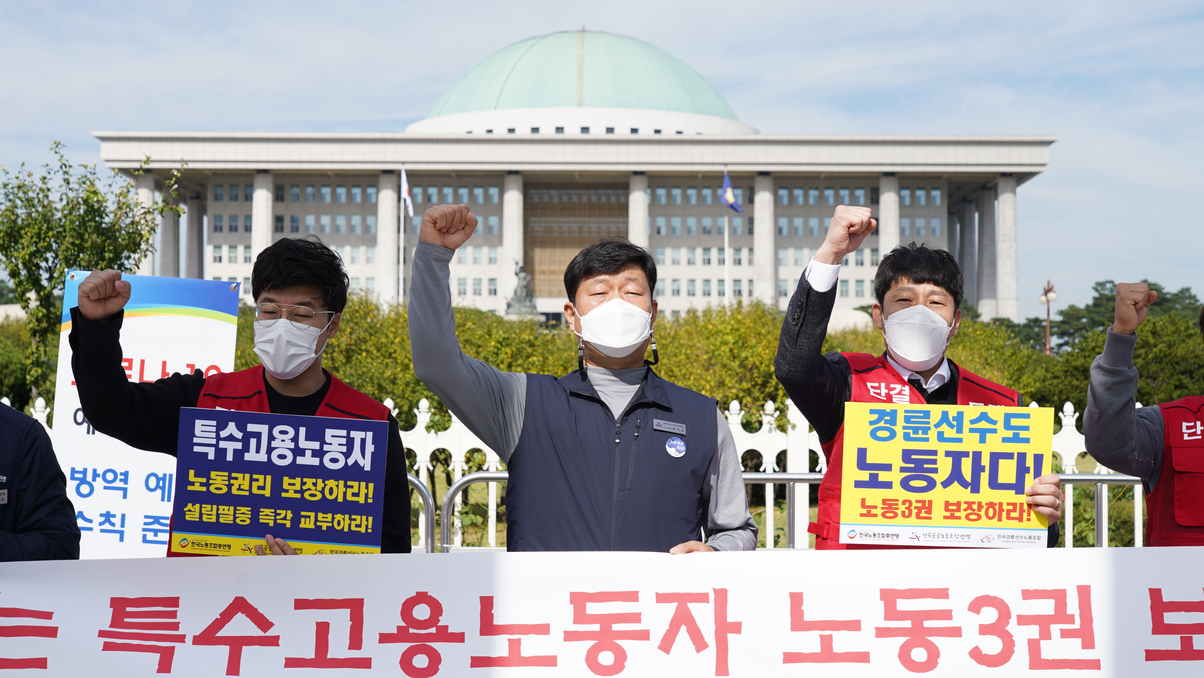 Çѱ¹°æ·û¼±¼ö³ëµ¿Á¶ÇÕ(À§¿øÀå À̰æÅÂ)ÀÌ 15ÀÏ(¸ñ) ¿ÀÀü ±¹È¸ ¾Õ¿¡¼ ¼³¸³ÇÊÁõ ±³ºÎ¸¦ Ã˱¸ÇÏ´Â ±âÀÚȸ°ßÀ» ¿¾ú´Ù.