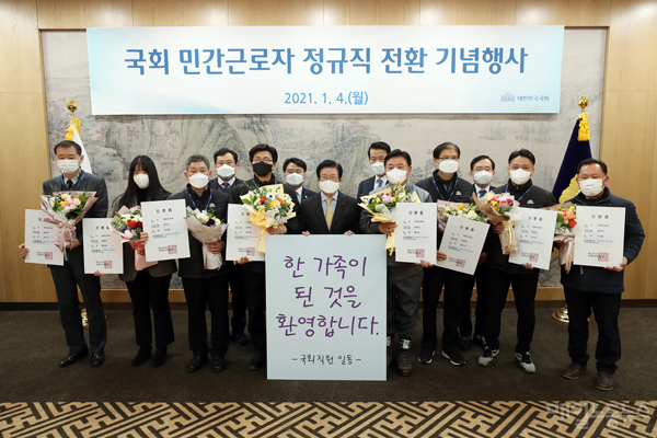 4ÀÏ(¿ù) ¿ÀÈÄ ±¹È¸´Â Á¢°ß½Ç¿¡¼ ‘±¹È¸ ¹Î°£±Ù·ÎÀÚ Á¤±ÔÁ÷ Àüȯ ±â³äÇà»ç’¸¦ ¿°í Áö³ 1ÀÏ ¿ë¿ª¾÷ü¿Í °è¾à±â°£ÀÌ ³¡³ 225¸íÀÌ Á¤±ÔÁ÷À¸·Î ÀüȯµÆ´Ù°í ¹àÇû´Ù.