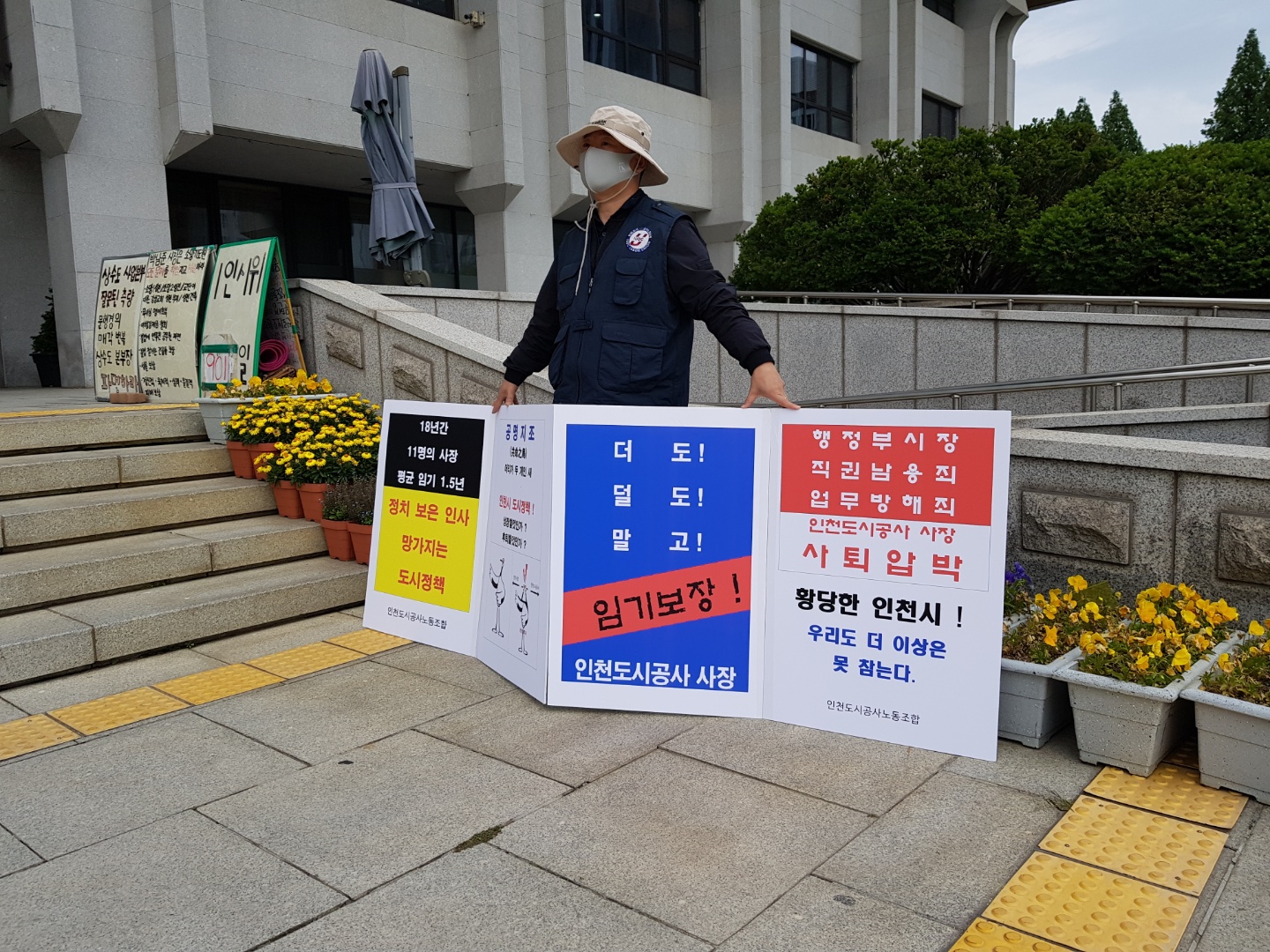 ÀÎõµµ½Ã°ø»ç³ëÁ¶(À§¿øÀå Á¤±³Çå)´Â Áö³ 26ÀÏ(¼ö) ÀÎõ½Ãû º»°ü ¾Õ¿¡¼ ÃÖ±Ù »çÀå »çÅð Á¾¿ë ³í¶õ¿¡ ´ëÇØ ±â°ü ÀÚÀ²¿î¿µ º¸ÀåÀ» Ã˱¸ÇÏ´Â 1ÀÎ ½ÃÀ§¸¦ ¹ú¿´´Ù.