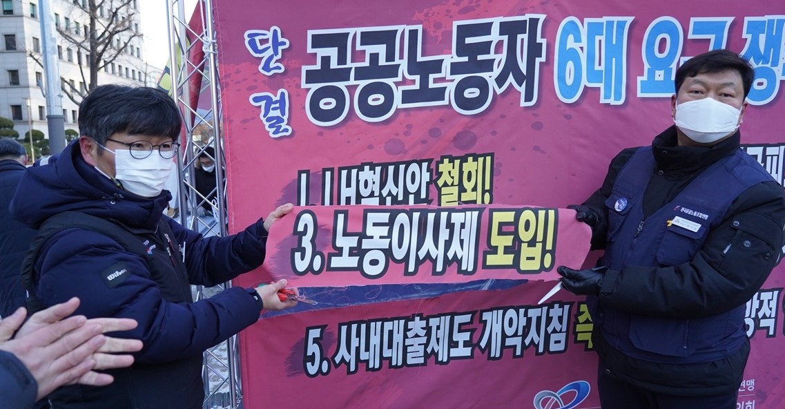 ‘°ø°ø±â°ü ³ëµ¿ÀÌ»çÁ¦ µµÀÔ’À» ÁÖ¿ä ³»¿ëÀ¸·Î ÇÏ´Â ‘°ø°ø±â°üÀÇ ¿î¿µ¿¡ °üÇÑ ¹ý·ü °³Á¤¾È’ÀÌ 1¿ù 11ÀÏ ¿ÀÈÄ ±¹È¸ º»È¸ÀǸ¦ Åë°úÇß´Ù. ÀÌ¿¡ ÇѰø³ëÇù(°ø°ø¿¬¸Í, °ø°ø³ë·Ã, ±ÝÀ¶³ëÁ¶)Àº ±¹È¸ ¾Õ¿¡¼ ±âÀÚȸ°ßÀ» ¿¾î ÀÌ¿¡ ´ëÇÑ ÀÔÀåÀ» ¹àÇû´Ù.