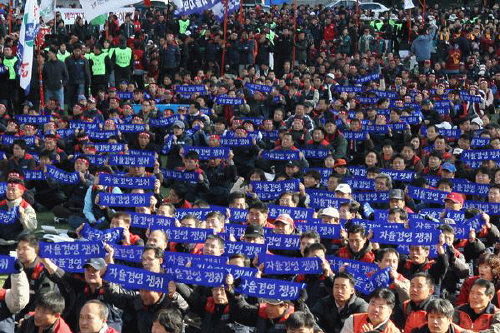 °áÀÇ´ëȸ°¡ ³¡³ ÈÄ Áýȸ Âü°¡ÀÚµéÀº °ð¹Ù·Î ½ÃÀÛµÈ Çѱ¹³ëÃÑ Àü±¹³ëµ¿ÀÚ´ëȸ¿¡ Âü°¡ÇÏ¿© ³ë»çÁ¤ÇÕÀÇ ÀÔ¹ý ÀïÃë¿Í