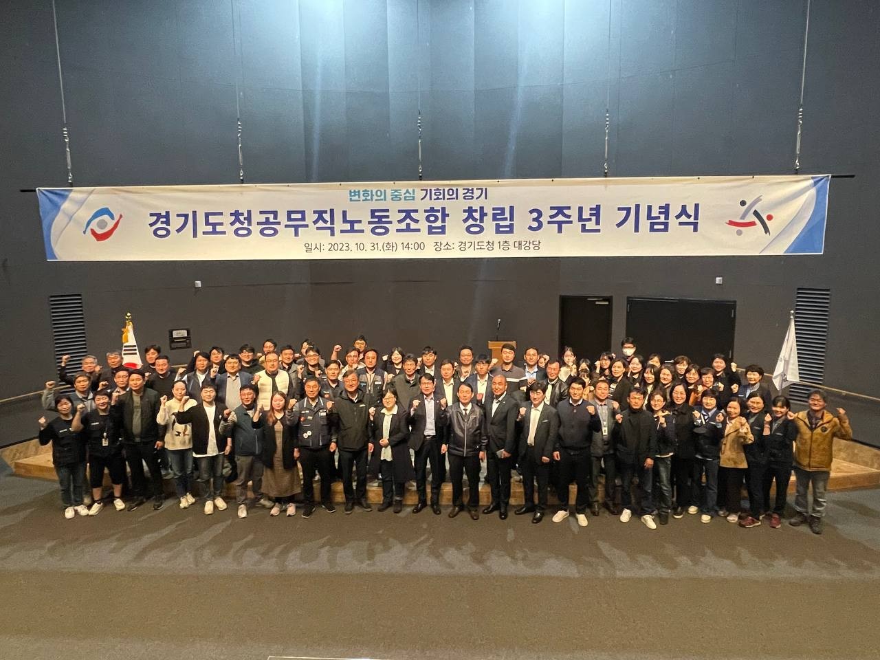 10¿ù 31ÀÏ(È) ¿ÀÈÄ °æ±âµµÃ»°ø¹«Á÷³ëµ¿Á¶ÇÕ(À§¿øÀå Ȳ¹Ì¿µ) ⸳ 3Áֳ⠱â³ä½ÄÀÌ °æ±âµµÃ» 1Ãþ ´ë°´ç¿¡¼ ¿·È´Ù.