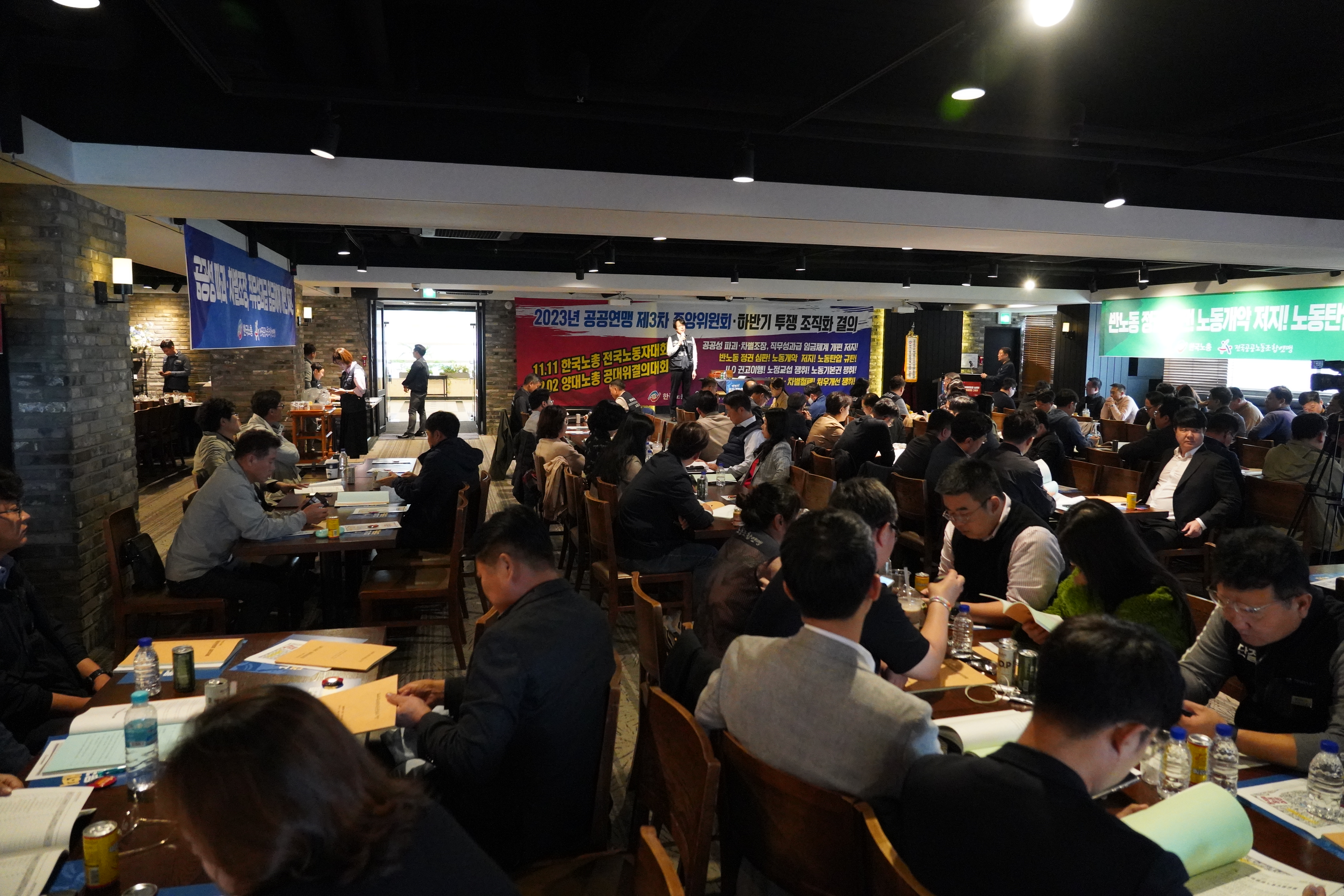 ¾Õ¼ Áß¾ÓÀ§¿øÈ¸¿¡¼´Â Á¤±â¼±°ÅÀÎ ¹èÁ¤(¾È)(ÃÑ582¸í, ¼±°üÀ§¿¡¼ ÃßÈÄ È®Á¤), Àǹ«±Ý Àå±â ¹Ì³³ ȸ¿øÁ¶ÇÕ¿¡ ´ëÇÑ ±Ç¸®Á¦ÇÑ µî ¾È°Çµµ ³íÀÇ µÆÀ¸¸ç, ¿ì¸®¿¬¸ÍÀÇ ´ëÁ¤ºÎ ÅõÀï ¹× ÁÖ¿ä Á¤Ã¥ ÀÇÁ¦, ´ëÀÀ »çÇ×À» °øÀ¯Çϰí Çѱ¹³ëÃÑ 11¿ù 11ÀÏ Àü±¹³ëµ¿ÀÚ´ëȸ, 12¿ù 2ÀÏ ¾ç´ë³ëÃÑ °ø°øºÎ¹® ³ëµ¿Á¶ÇÕ °áÀÇ´ëȸ¿¡ Àû±Ø °áÇÕÇØ ÁÙ °ÍÀ» ¿äûÇß´Ù.