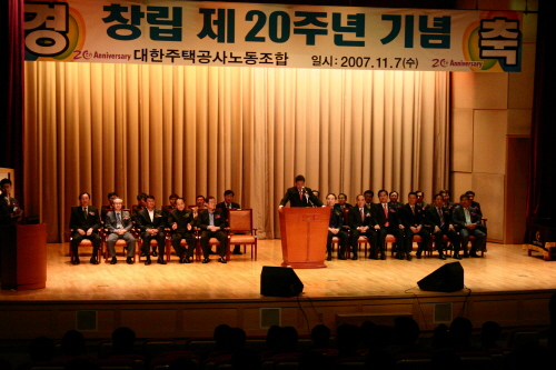 À§¿øÀå°ú ȸ¿øÁ¶ÇÕ À§¿øÀå ¹× °£ºÎ µîÀÌ ¿¬´ë Âü¼®ÇÏ¿© ³ëµ¿Á¶ÇÕ Ã¢¸³ 20ÁÖ³âÀ» ÇÔ²² ÃàÇÏÇß´Ù.