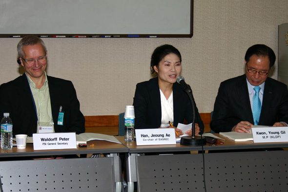º¸ÀåÇ϶ó´Â ¼º¸í¼ ¹ßÇ¥¿Í PSI Peter Waldorff ±¹Á¦°ø°ø³ë·Ã »ç¹«ÃÑÀåÀÇ ¿¬´ë¹ß¾ð ±×¸®°í ±Ç¿µ±æ ÀÇ¿øÀÇ '°ø¹«¿ø³ëµ¿Á¶ÇÕ¼³¸³ ¹× ¿î¿µ