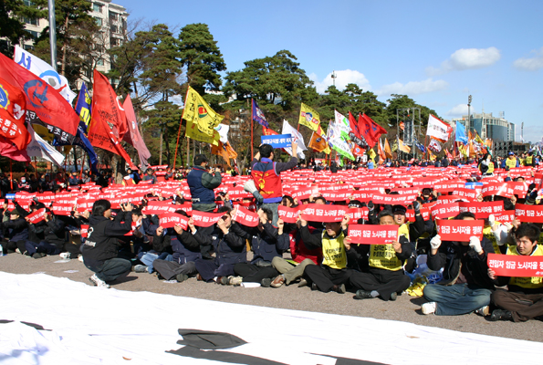 2008³â 11¿ù 29ÀÏ(Åä) Çѱ¹³ëÃÑ Àü±¹³ëµ¿ÀÚ´ëȸ°¡ ¿©Àǵµ°ø¿ø ¹®È¸¶´ç¿¡¼ »ç»ó ÃÖ´ë ÀοøÀÎ 10¸¸ Á¶ÇÕ¿øÀÌ °áÇÕÇÑ °¡¿îµ¥ ½ÃÀ۵ƴÙ.