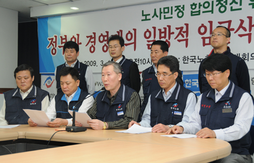 Çѱ¹³ëÃÑÀÇ Á¤´çÇÑ ¿ä±¸°¡ ¹Þ¾Æµé¿©ÁöÁö ¾Ê°í Á¤ºÎ¿Í °æ¿µ°è°¡ ÀϹæÀûÀÌ°í °Á¦ÀûÀÎ Àӱݻ谨 ½Ãµµ¸¦ °è¼ÓÇÒ °æ¿ì, Çѱ¹³ëÃÑÀº ³ë»ç¹ÎÁ¤ ÇÕÀÇ¿¡ ´ëÇÑ