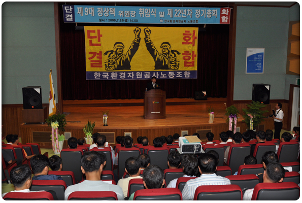 Çѱ¹È¯°æÀÚ¿ø°ø»ç³ëµ¿Á¶ÇÕ(À§¿øÀå Á¤»óÅÃ)Àº 2009³â 7¿ù 24ÀÏ(±Ý) ÀÎõ¿¡ À§Ä¡ÇÑ ±¹¸³Àη°³¹ß¿ø 1Ãþ ´ë°´ç¿¡¼ Á¦9´ë À§¿øÀå ÃëÀÓ½Ä ¹×