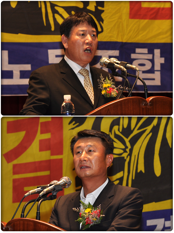 µ¹¾Æ°¡´Â ÀüÀ§¿øÀåÀ» °Ý·Á¿Í ¹Ú¼ö·Î µû¶æÇÏ°Ô ¸Â¾Æ´Þ¶ó'´Â ´çºÎ¸¦ ÇÏ¸ç ³ëµ¿ÀÚÀÇ ÀûÀÌ ³ëµ¿ÀÚÀÏ ¼ö ¾øÀ¸¸ç ¼±°Å´Â ¼±°ÅÀÏ »ÓÀÌ°í ³ëµ¿Á¶ÇÕÀ» Áß½ÉÀ¸·Î