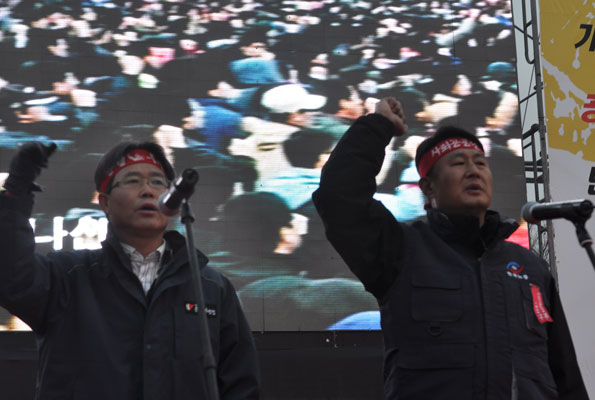 °úõÁ¾ÇÕû»ç ¾Õ ¿îµ¿Àå¿¡¼ ¾à 30.000¸íÀÇ ¾ç´ë³ëÃÑ °ø°ø¿¬¸Í Á¶ÇÕ¿øµéÀÌ Âü¼®ÇÑ °¡¿îµ¥ 2009³â11¿ù28ÀÏ ¿ÀÈÄ 2½ÃºÎÅÍ
