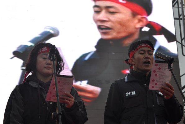 ¹ÎÁÖ³ëÃÑ ÀÌÁ¦ °¡¸± °ÍÀÌ Çϳªµµ ¾ø´Ù. ³ëµ¿ÀÚ´Â Çϳª´Ù. ÇϳªÀÇ ´Ü°áµÈ ÀÌ·¯ÇÑ ÅõÀïÀÇ ÈûÀ¸·Î À̸í¹Ú Á¤±Ç°ú ½Î¿ö ³ª°¡ÀÚ¡±°í ´çºÎÇÏ¸é¼ ¾ç¿¬¸ÍÀÇ