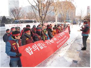 2. ±âÁ¤¿ø ³ëµ¿Á¶ÇÕÀº ¼¿ïÁö¹æ³ëµ¿À§¿øÈ¸ÀÇ ¡®Á¶Á¤ÁßÁö¡¯ °áÁ¤¿¡ µû¶ó Áö³ 3ÀÏ ÆÄ¾÷ Âù¹ÝÅõÇ¥¿¡¼ °¡°áµÈ ÀïÀÇÇàÀ§ Âù¹ÝÅõÇ¥°á°ú(96.9%·Î °¡°á)¸¦ ±Ù°Å·Î 12¿ù 21ÀϺÎÅÍ 28ÀϱîÁö »çÃøÀÇ ¼º½ÇÇÑ ±³¼·À» ¿ä±¸Çϸç 5Â÷·ÊÀÇ Áß½ÄÁýȸ¸¦ °³ÃÖÇÏ¿´À¸³ª, »çÃøÀº ÀÌÀü¿¡ µû¸¥ Áغñ¿©ºÎ¿Í »ó°ü¾øÀÌ ¹«Á¶°ÇÀûÀÎ ¡®1¿ù4ÀÏ ´ëÀüÀÌÀü¡¯¸¸À» °íÁýÇÏ´Â µî ÇÑ Ä¡ÀÇ ¾çº¸µµ ¾ø´Â ºÒ¼º½ÇÇÑ ±³¼·Åµµ·Î ÀϰüÇÏ¿©, °á±¹ ³ë»ç°£ ÇÕÀÇ¿¡ À̸£Áö ¸øÇÏ¿´½À´Ï´Ù.
