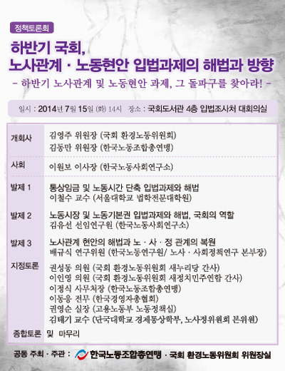 "ÇϹݱ⠱¹È¸, ³ë»ç°ü°è ¹× ³ëµ¿Çö¾È ÀÔ¹ý °úÁ¦ÀÇ ÇØ¹ý°ú ¹æÇâ"