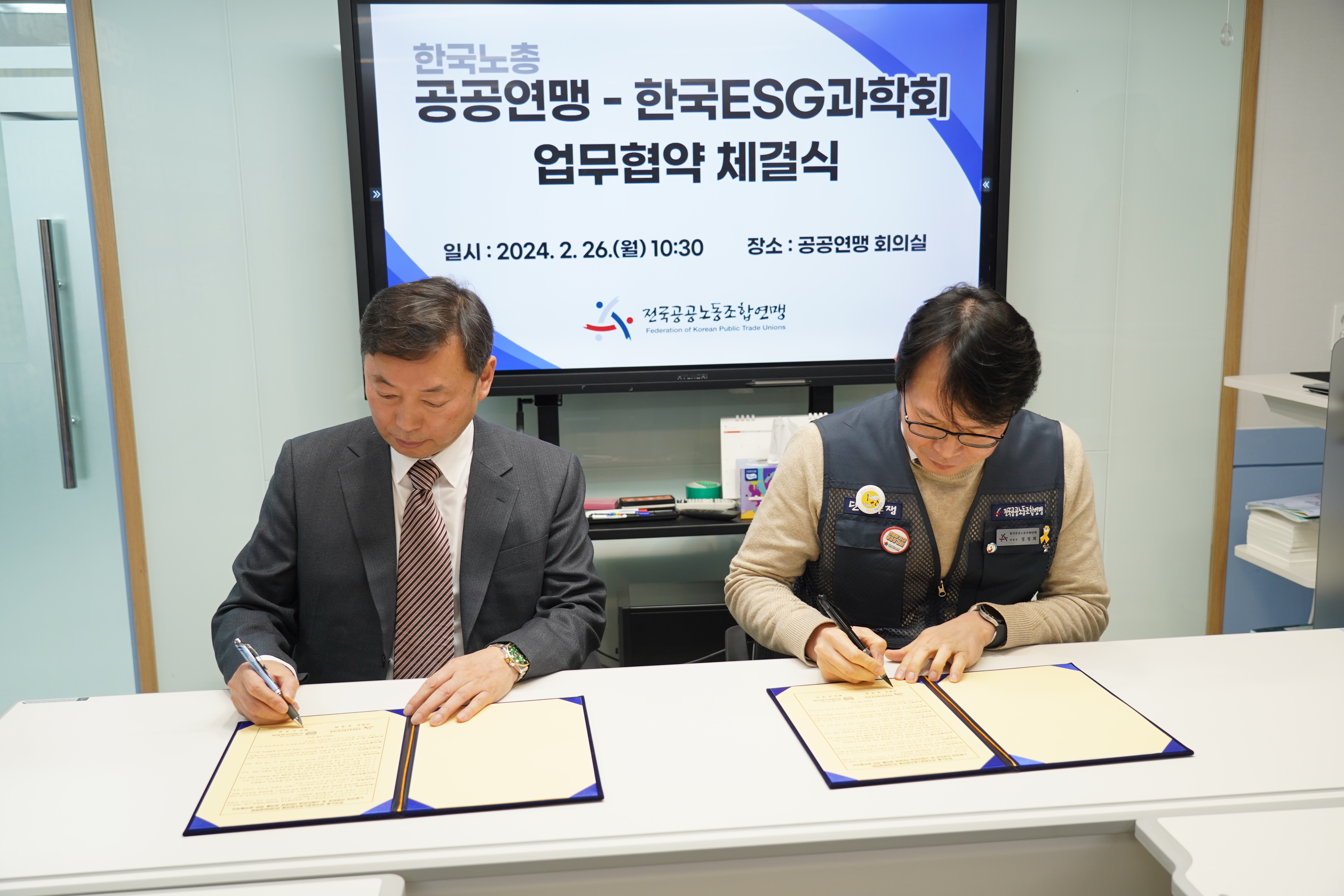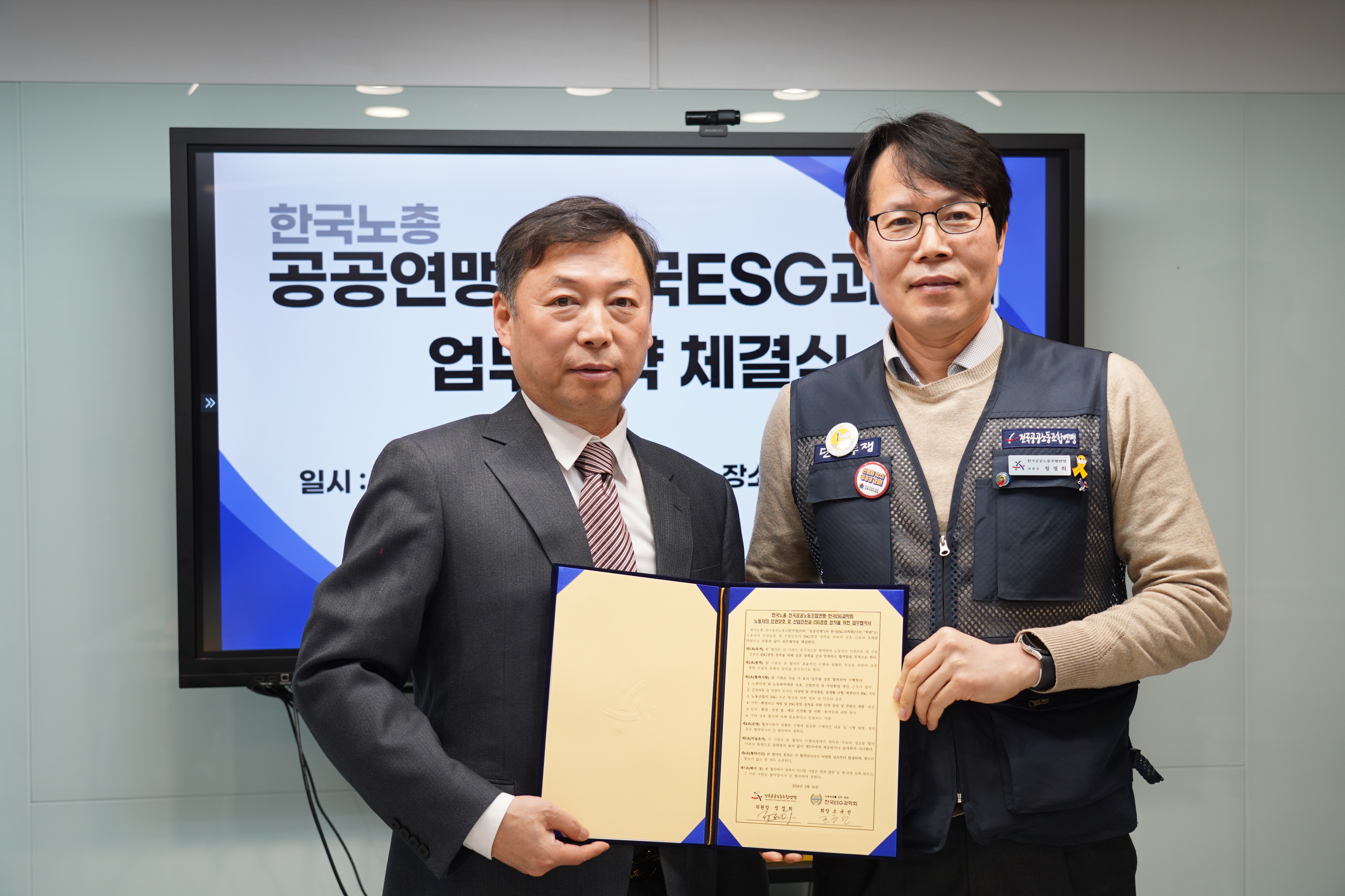 Çѱ¹³ëÃÑ Àü±¹°ø°ø³ëµ¿Á¶ÇÕ¿¬¸Í-Çѱ¹ESG°úÇÐȸ ³ëµ¿ÀÚ ÀαǺ¸È£ ¹× »ê¾÷¾ÈÀü, ESG°æ¿µ Á¤Âø À§ÇÑ ¾÷¹«Çù¾à